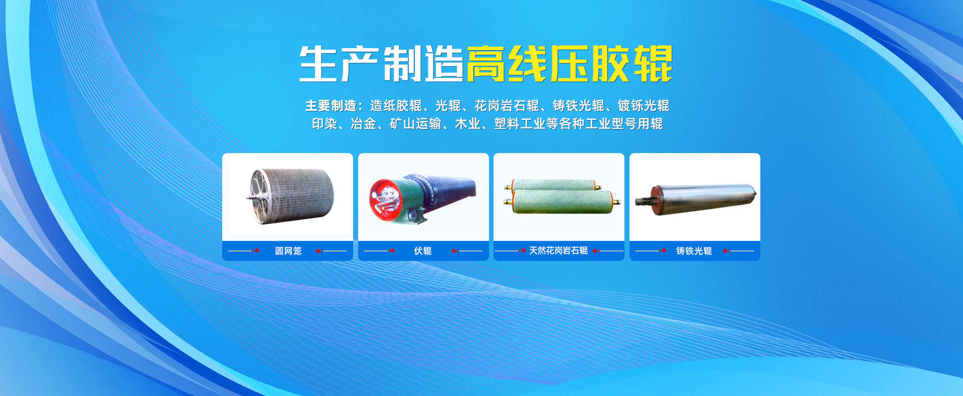 主要制造:造紙膠輥、光輥、花崗巖石輥、鑄鐵光輥、鍍鑠光輥、印染、冶金、礦山運(yùn)輸、木業(yè)、塑料工業(yè)等各種工業(yè)型號(hào)用輥